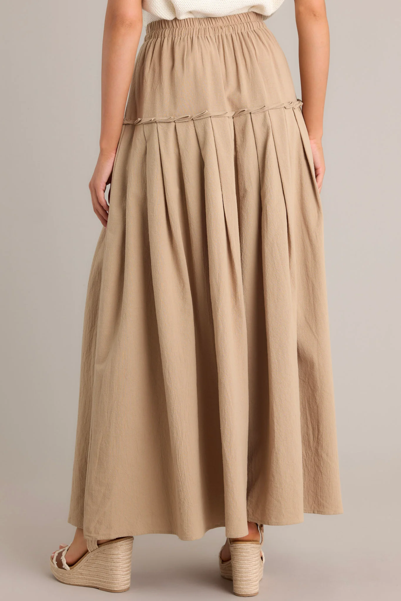 A flowy pleated maxi skirt with a high waist and elegant silhouette.